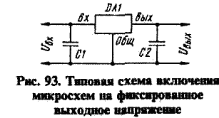 Типовая схема включения микросхем на фиксированное выходное напряжение приведена на рис. 93. Для всех микросхем емкость конденсатора С1 должна быть не менее 2,2 мкФ для керамических или танталовых и не менее 10 мкФ для алюминиевых оксидных