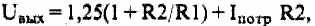 где Iпотр - собственный ток потребления микросхемы, составляющий 50...100 мкА. Число 1,25 в этой формуле - это упомянутое выше напряжение между выходом и управляющим выводом, которое поддерживает микросхема в режиме стабилизации.