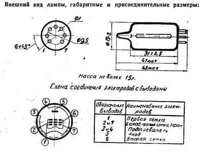 Пентод 6Ж1П предназначен для широкополосного усиления напряжения высокой частоты.