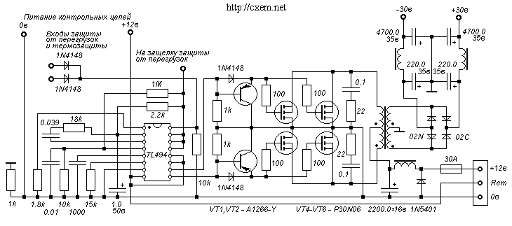 Смотри если на TL494 то вот схема, запуск Remотным на +