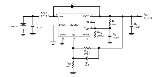 Ищу схему включения и выключения кнопкой без фиксации преобразователя DC_DC на LM2621 предварительно запитав аккумулятором от сотового 3,6V с возможностью зарядки от з/у
