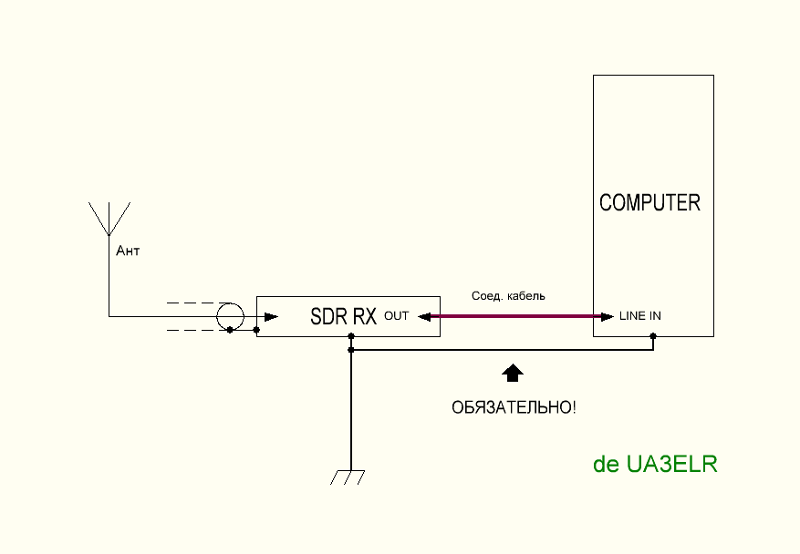 "Да ещё, всем, кто экспериментирует с SDR, хотелось бы дать совет из личного опыта - нужно обязательно незабыть соединить корпус устройства и компьютера, иначе при случайных манипуляциях с соединительным кабелем (особенно при подключенной антенне) - можно легко повредить вход зв. карты компьютера. А ещё лучше сделать полную развязку между антенной и антенным входом SDR девайса с помощью широкополосного ВЧ трансформатора 1:1