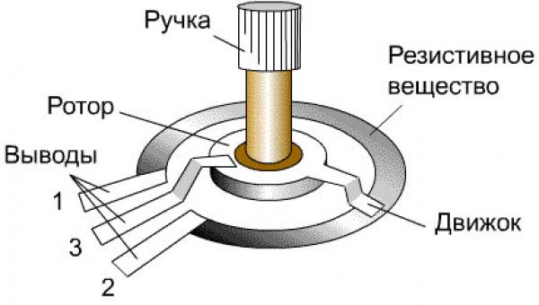 Вот строение переменного резистора, между выводами 1 и 2 в данном случае сопротивление составляет 100к.rtb пишет: На счет резисторов как я понял там отдельно 2 выхода ( с ними не нужно ничего делать) и рядом 3, мне нужны эти 3, но вот как понять какие нормальноразомкнутые хз, подскажите пожалуйста.