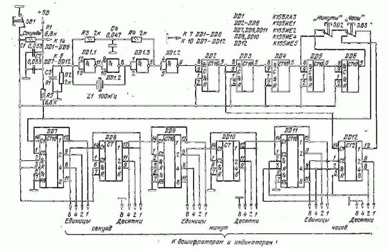 Прошу прощения чего то я зашился и не заглядывал на форум. А все очень просто, Doc, кая я уже говорил я нашел на работе микрухи, и меня приколола цифра, и вот я решил сделать часы на 155 серии. Ну вот в этих часах есть кнопки перевода времени, ну чего я объясняю вот картина.