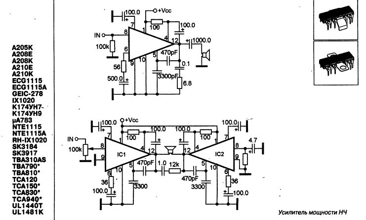 Низкая частота - это звуковая, которую мы слышим. Прикрепляю параметры микросхем. В таблице последовательно идут: