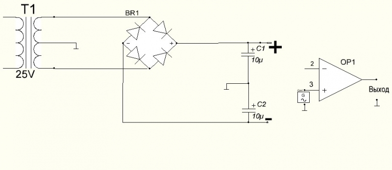 А среднюю точку двухполярного куда садить? Короче, подключил сегодня двухполярное питание к этому ОУ, а среднюю точку питания посадил на общий. Резисторы 1000/100 Ом, на вход подавал 1В. Без входного 1В на выходе получилось 1,2В, при подаче входного от 1В до 4В на выходе 6,25В и не меняется. Мерил относительно общего и выхода.