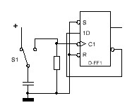 Небольшая помарка на схеме. Входы S и R обозначены инверсными, но подключены к 0, тоесть в активное состояние.Николай Петрович пишет: Самый простой способ, известный мне.