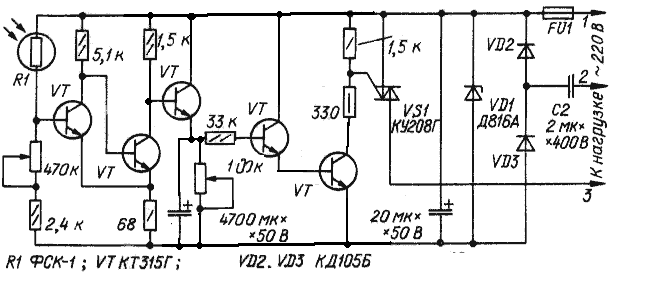 Нужна принцепиальная схема фотореле, с задержкой выключения,
