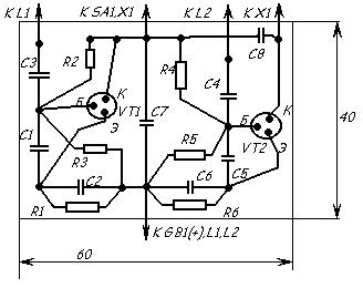 Источники питания- батарея 3336, ваключатель SA1- тумблер, разъем Х1- двухгнездая колодка.