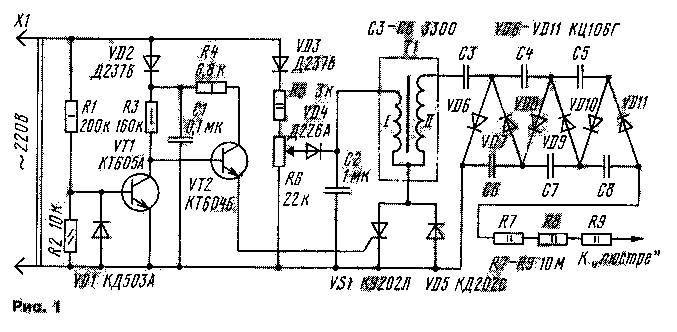 подаваемое на нее, поворачивая ось резистора R6. После появления запаха озона уменьшают напряжение до его исчезновения.