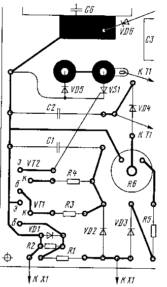 Перед первым включением устройства переменный резистор R6 следует установить в нижнее по схеме положение. Включив источник с подключенной к нему "люстрой", плавно увеличивают напряжение,