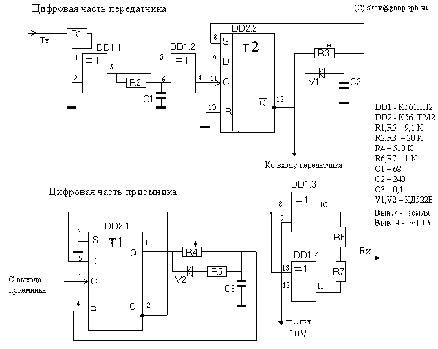 должна быть минимальна.) Схема цифровой части приемника содержит триггер Т1 с