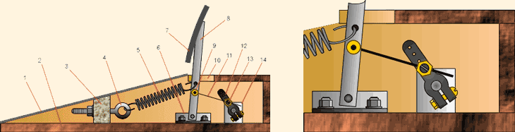 к стойке педали (8). Педальный потенциометр установлен на простом L-кронштейне