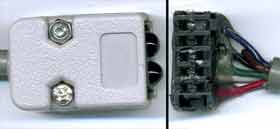 Плату поместил в обрезанный копрус разъема для СОМ-порта. Справа - разьем для motherboard, это фрагмент обычного IDE разъема. |