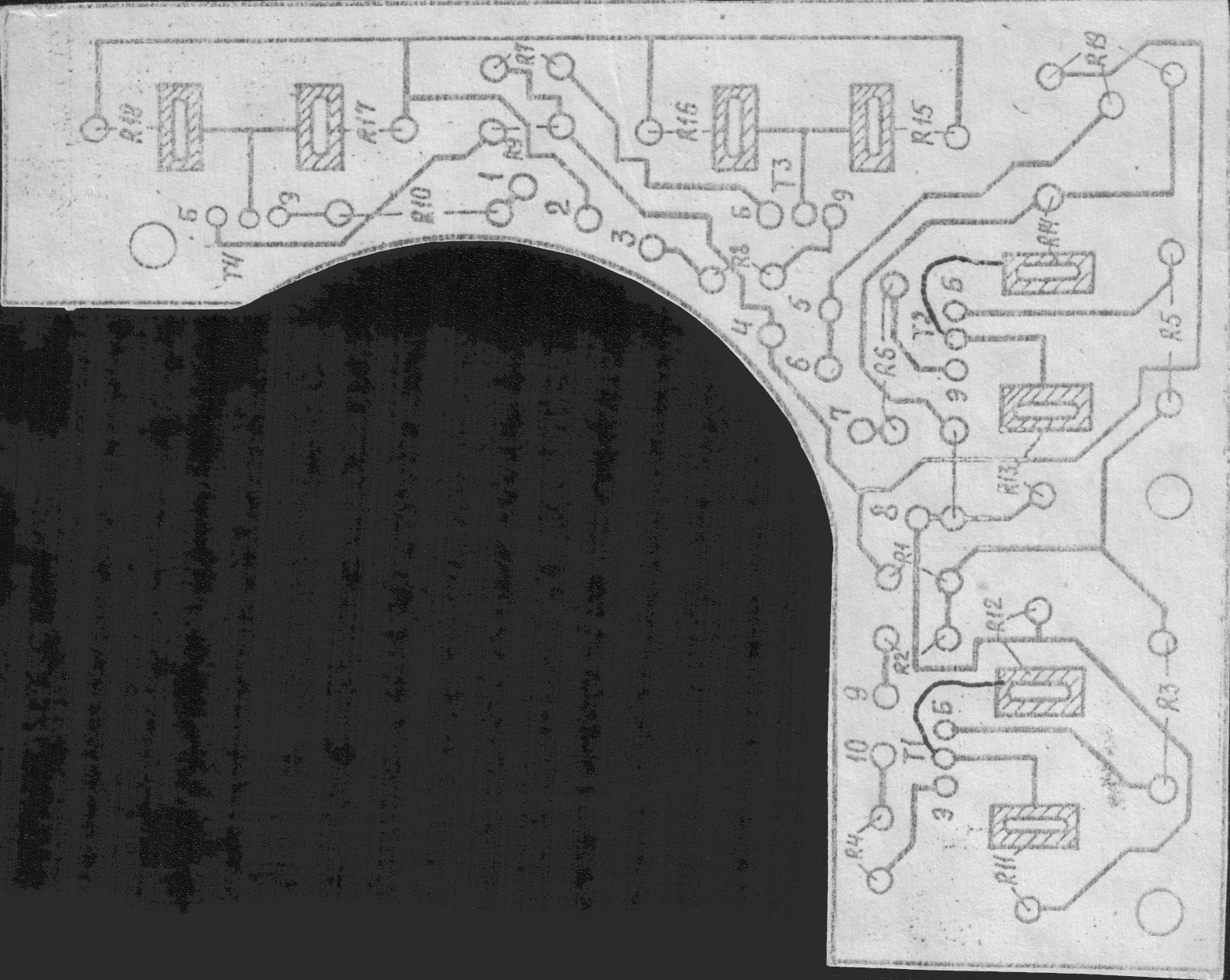 Напряжения источников 100 В и 200 В не стабилизированы и снимаются со вторичной обмотки силового трансформатора Tpl через схему удвоения ДС2-УЗ, С26-УЗ, С27-УЗ. Напряжения источников +12 В и -12 В стабилизированы и получаются из стабилизированного источника 24 В. Стабилизатор на 24 В выполнен на транзисторах Т14-УЗ, Т16-УЗ, Т17-УЗ. Напряжение на вход стабилизатора снимается со вторичной обмотки трансформатора Tpl через диодный мост ДС1-УЗ. Подстройка стабилизованного напряжения 24 В производится резистором R37-y3, выведенным под шлиц. Для получения источников +12 В и -12 В в схему включен эмиттерный повторитель Т10-УЗ, база которого питается от резистора R24-y3, которым осуществляется подстройка источника +12 В.