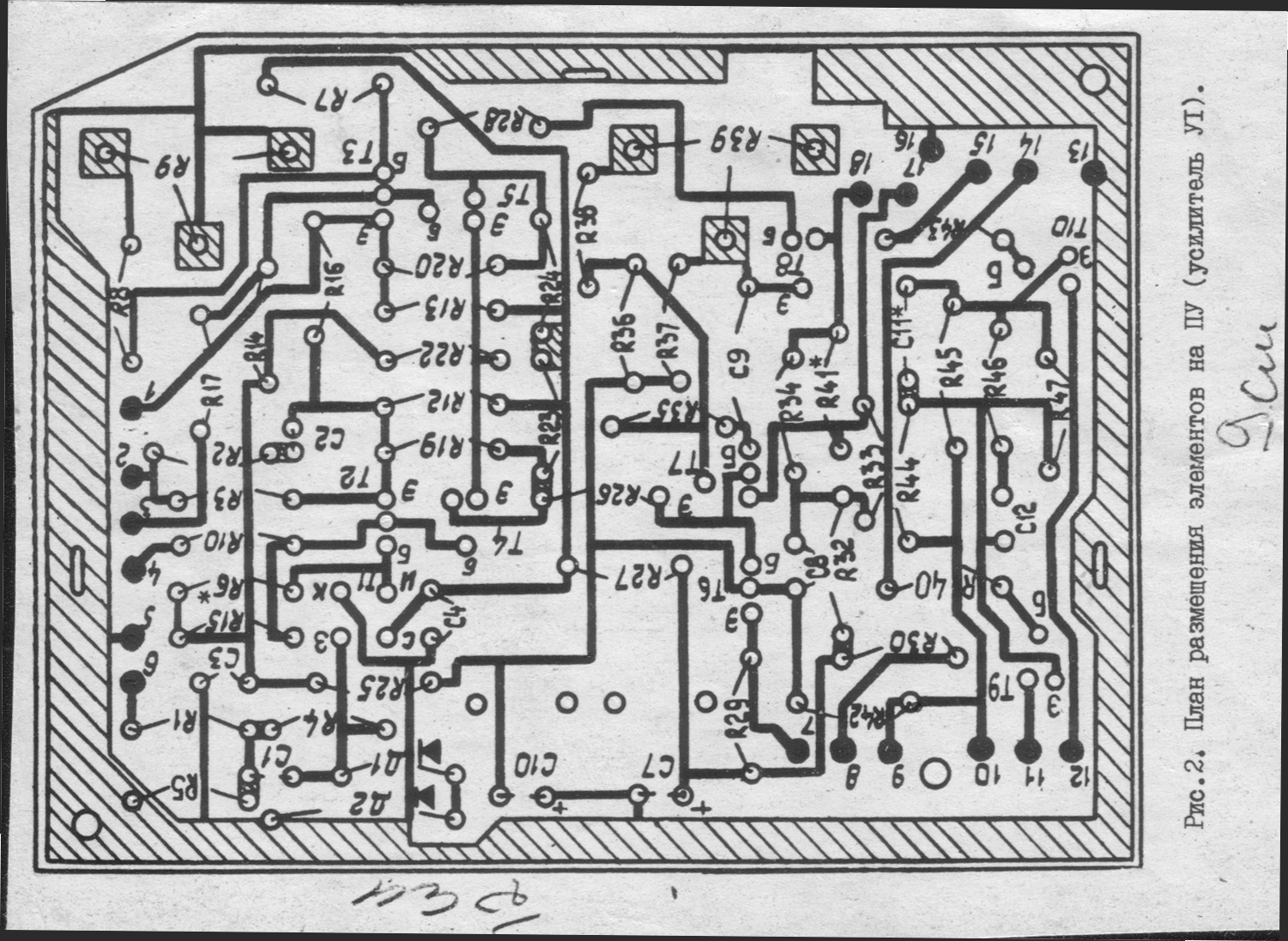 Для исключения паразитных связей по цепям питания предварительный усилитель запитывается через фильтр R42-У1, С10-У1, R25-Y1, СЗ-У1 от источника -12 В и через фильтр R30-Y1, С7-У1, R27-Y1, С4-У1 от источника +12 В.