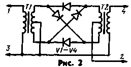Указанные на схеме номиналы частотоопределяющих элементов соответствуют частоте гетеродина 25 МГц. что позволяет. например, наблюдать на экране осциллографа с полосой пропускания до 5 МГц форму высо-кочастотных колебаний сигналов с частотой 20...30 МГц. Смеситель Ul - обычный диодный кольцевой смеситель, его схема приведена на рис. 2. |