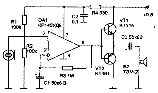 Электронный стетоскоп регистрирует колебания стен толщиной до 0,5 м. При необходимости можно усилить до нужной величины, используя дополнительный усилитель низкой частоты. Датчик вибрации делается из пьезокерамической головки звукоснимателя от проигрывателя ПЭ-1, ТЗП-308Т или используются пьезоизлучатели ЗП-1, ТЗП-308, которые хорошо воспроизводят частоты в диапазоне 800-3000 Гц.