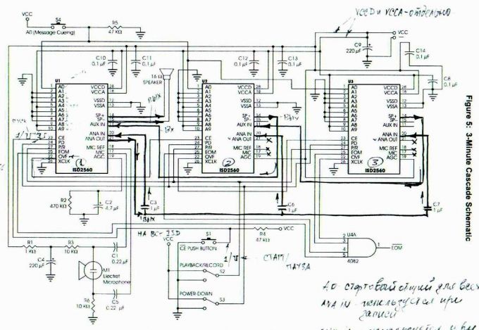 РИСУНОК4, каскадирование трёх ISD2560.