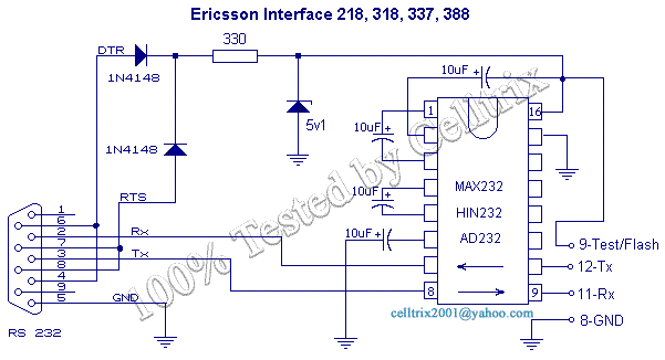 Схема интерфейсного шнура для Ericsson 6xx/7xx/8xx/T10/T18/A1018