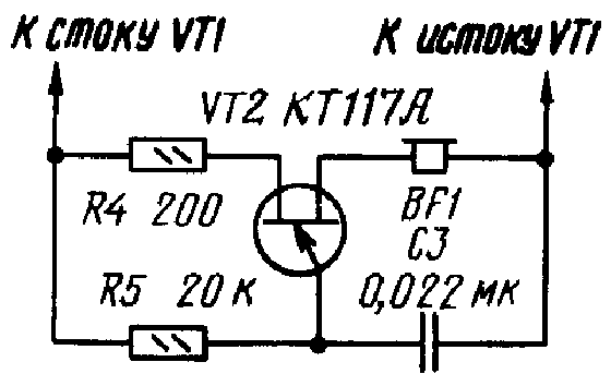 Остается добавить, что для слаботочных нагрузок в блок питания можно ввести ограничитель тока КЗ на полевом транзисторе КП302В. При выборе транзистора для других блоков следует учитывать его допустимую мощность и напряжение сток - исток.