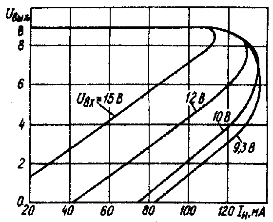 ределы изменения входного напряжения можно расширить в сторону увеличения использованием стабилитрона VD2 с более высоким напряжением стабилизации. При этом, однако, нагрузочная характеристика несколько изменится.