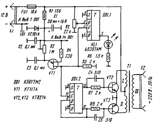 Преобразователь 12V / 220V на таймере 1006ВИ1
