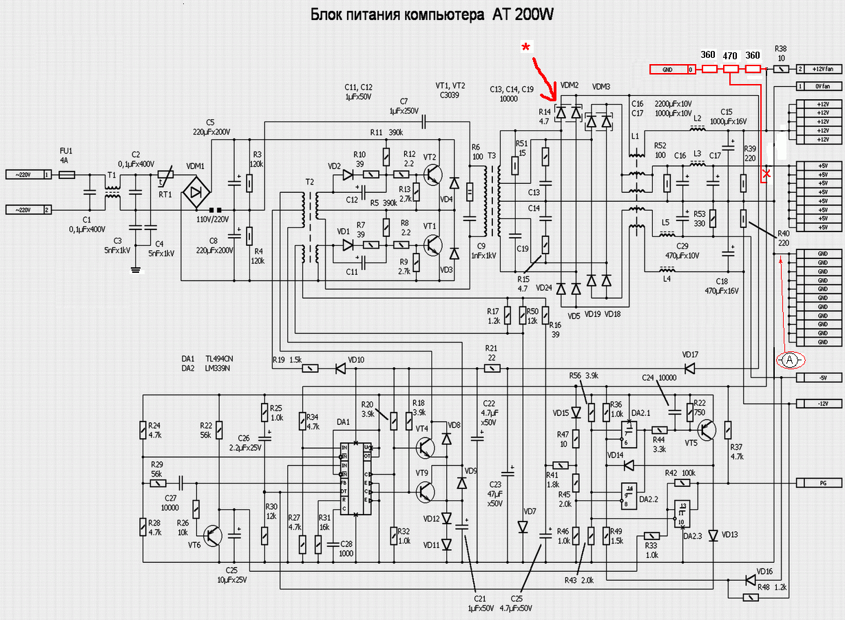 При переделке нужно обратить внимание на диоды Шотки (параметры) в выпрямительных цепях +12В. *