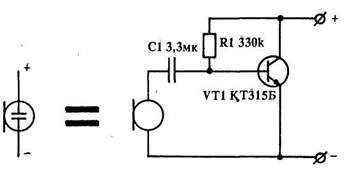 При повторении некоторых зарубежных схем нередко возникает проблема замены электретного (конденсаторного) микрофона обычным динамическим. Как видно из схемы, каскад на одном транзисторе позволяет успешно справиться с этим.