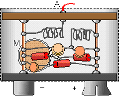 Микрофон - телефонный электретный капсюль (применяется также в магнитофонах). На задней плате есть два контакта, один из них соединен с корпусом микрофона. Это минусовой вывод - общий. На второй контакт подается питание через резистор 5...20 кОм. Если усиление слишком велико, в цепь эммитера первого транзистора включите сопротивление 100 Ом...10 кОм. Резистор в цепи эммитера второго транзистора определяет рабочий ток генератора ВЧ. Не уменьшайте его значение ниже 50 Ом - транзистор будет перегружен. Увеличение сопротивления повышает стабильность генератора и срок службы батареи, но приводит к снижению выходной мощности. Диаметр намотки контурной катушки - 5 мм, провод 0.5 мм. Число витков катушки для диапазона FM 5-6. Грубо рабочую частоту устанавливают подстроечным конденсаторм контура, а точно - растяжением/сжатием витков катушки. Подстроечный конденсатор желательно заменить постоянным нужной емкости. Катушка связи расположена рядом с "горячей" стороной контурной катушки соосно на рассоянии 2 мм и содержит 4 витка того-же провода. Сближение катушек (вплоть до намотки катушки связи поверх контурной) и увеличение кол-ва витков катушки связи увеличивает полезную мощность в антене, но снижает стабильность частоты из-за влияния емкости антены на настройку контура (т.к. каскад усиления мощности отсутствует). Поэтому ограничьтесь максимально возможной глубиной связи, при которой влияние расположения антены в пространстве и касание ее руками не приводит к заметному уходу частоты передатчика.