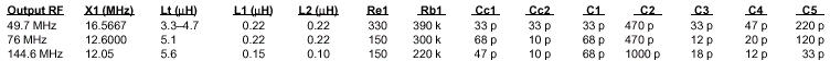 Таблица номиналов элементов для различных частот: