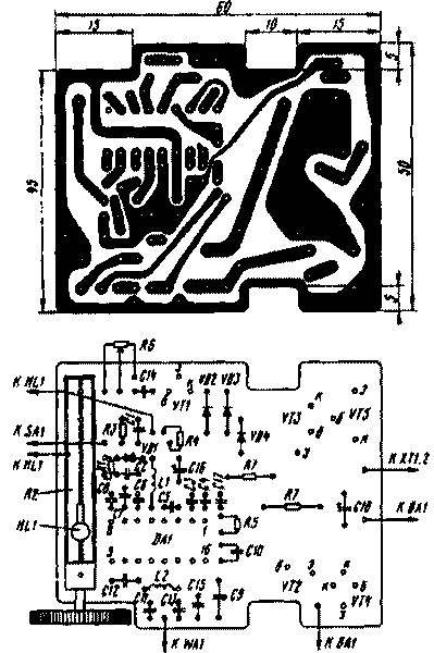 Катушка L1 содержит 12 витков на каркасе диаметром 5 мм, длина намотки 12...16 мм. L2 содержит 7 витков на таком же каркасе, длина намотки 7...10 мм. Провод для обеих катушек - ПЭВ 0,9.