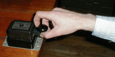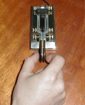 Нажатием в какую сторону должны передаваться "точки", а в какую - "тире"? У механического полуавтомата для передачи серии "точек" требуется резкое нажатие с некоторым усилием, чтобы привести в действие маятниковый вибратор, а длительность каждого "тире" целиком обусловлена нажатиями контакта другим пальцем. Поэтому на виброплексе "точки" обычно предают более сильным большим пальцем, а "тире"- указательным. С электронным ключом ситуация иная - усилия нажатий в обе стороны одинаковы и невелики, а указательный палец, как более подвижный, больше подходит для передачи коротких "точек". Однако никто еще не доказал и не опроверг преимуществ или недостатков "правостороннего" или "левостороннего" движения, так что при работе на электронном ключе это не имеет существенного значения и является только делом привычки. Когда-то некоторые радиолюбители предлагали вести передачу на полуавтоматическом ключе левой рукой. Они мотивировали свое предложение тем, что если в правой руке всегда карандаш, то можно оперативнее переходить от передачи к записи принятого, и наоборот. Предложение получило некоторое распространение лет двадцать пять назад, но ожидаемый эффект никем не был подтвержден. На практике гораздо удобнее большую часть времени левую руку держать в зоне расположения основных органов управления радиостанцией (в том числе и регулятора скорости ключа), а правой - попеременно вести записи и передавать. Многие из тех, кто ведет аппаратный журнал все еще на бумаге, а не на компьютере, и во время передачи оставляют карандаш в руке, а не кладут его на стол. Вообще, это тоже главным образом дело привычки. Когда одна из рук хорошо "обучена" передавать, то при желании легко научиться это делать и другой. Для этого приходится реверсировать подключение контактов манипулятора, чтобы "точки" и "тире" передавались одноименными пальцами другой руки (движения рук симметричны). Методика тренировок такая же, как и на простом ключе, за исключением "разминки" - передача длинных серий "точек" и "тире" в начале тренировки здесь не требуется. Можно сразу отрабатывать передачу с небольшой скоростью отдельных букв и цифр, переходя от простых к сложным, а когда это будет освоено - к передаче различных текстов. Что такое "ямбический ключ"? Ямбическим ключом (iambic keyer) называют электронный ключ, отличающийся от обычного полуавтоматического только тем, что при замыкании обоих контактов манипулятора он формирует на выходе серию следующих поочередно коротких и длинных посылок. Разумеется, манипулятор такого ключа должен быть со сдвоенной рукояткой и независимо действующими правым и левым контактами. Таким образом, чтобы, например, передать букву С (латинскую), оператору достаточно только сжать пальцами рукоятку манипулятора на нужное время, то есть сделать лишь одно движение вместо четырех, как на обычном полуавтомате. Экономия движений получается и на других знаках, где "точки" и "тире" перемежаются (например, буквы P, Q, Y, X). Однако опыт лучших радистов-скоростников не выявил какой-либо заметной разницы в результатах у приверженцев ямбического и обычного режимов работы. Работа на ямбическом ключе несколько отличается от обычной, так что при переходе от одного к другому приходится переучиваться. До тех пор, пока не накоплен значительный опыт работы на том или ином ключе, 