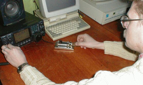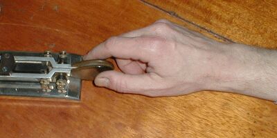 Нажатия и отжатия нужно осуществлять быстрыми, энергичными движениями, они должны сопровождаться четким и одинаковым по силе стуком рабочего и противоположного контактов. Как тренироваться в передаче простым ключом? Тренировки начинают с отработки ритма, передавая несколько раз по 40-90 секунд непрерывные серии коротких и серии длинных посылок (нажатий), стараясь удерживать стабильный темп и соотношение длительностей нажатие/отжатие 1:1 - в первом случае, а во втором - 3:1. Если есть возможность, эти упражнения хорошо делать в такт с метрономом. Затем переходят к передаче серий из последовательно чередующихся коротких и длинных посылок, а только после этого - к передаче сигналов азбуки Морзе. Ни в коем случае нельзя торопиться, внимание должно быть сосредоточено не на скорости, а прежде всего - на ритмичности и четкости Вашей передачи. Скорость придет постепенно, в процессе тренировок. Длительность звучания коротких посылок ("точек") и пауз между посылками одного знака должны быть равными. Длинные посылки ("тире") и паузы между буквами должны быть втрое, а промежутки между словами - в пять-семь раз продолжительнее "точек". Перед каждой тренировкой, чтобы "настроиться" на правильный ритм, полезно послушать высококачественную передачу (компьютер или магнитофонную аудиозапись) с заведомо стандартными соотношениями длительности всех элементов азбуки Морзе именно на такой скорости, с которой Вы сами намерены передавать. Время от времени можно упражняться, передавая ключом в унисон со звучанием стандартной передачи (для этого нужно, конечно, заранее подготовить распечатку ее текста). Для тренировок заранее подготавливайте соответствующие тексты (из расчета на 3-4 минуты передачи каждый). Лучше всего, если они напечатаны или четко написаны от руки достаточно крупными заглавными буквами. Стандартные тренировочные радиограммы (несмысловые) обычно состоят из пятизначных групп, по пять групп в строке, и передаются в том же порядке, как и обычный текст, т.е. строка за строкой. Смысловой текст для тренировки в передаче подойдет из любой газеты или книги с крупным латинским шрифтом. Время от времени в качестве текстов для передачи неплохо пользоваться также таблицами телеграфных кодов и сокращений - попутно они будут запоминаться. Если при передаче текста произошла ошибка, следует передать серию не менее чем из семи "точек" и повторить полностью все слово или группу знаков сначала. После передачи каждого текста (3-4 минуты) давайте руке расслабиться и отдохнуть около минуты. Опытные радисты в состоянии вести передачи ключом часами почти без перерывов, но это достигается только длительными тренировками. Увеличивать нагрузку следует очень постепенно. Не следует тренироваться после тяжелой физической работы. Качество своей передачи контролируют на слух, включив в цепь ключа любой простейший звуковой генератор. Можно также записывать передаваемые вами сигналы на магнитофон, чтобы затем послушать их еще раз, как бы со стороны. Время от времени полезно вести контроль и визуально, используя осциллограф с достаточно большим послесвечением и медленной (несколько секунд) разверткой, Y-вход которого можно подключить параллельно выходу звукового генератора или магнитофона. На экране будут хорошо видны все отклонения от стандартных соотношений д